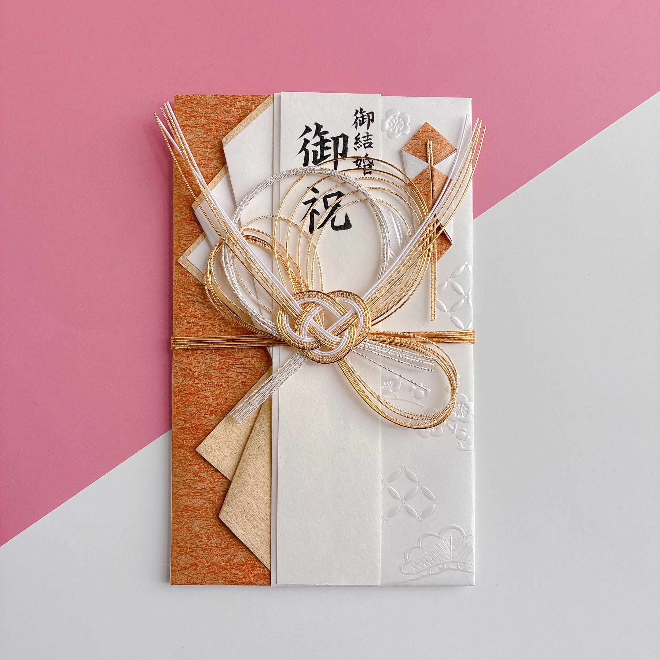 七宝柄と松竹梅の立体的なパールの箔押しが上品な熨斗袋です。